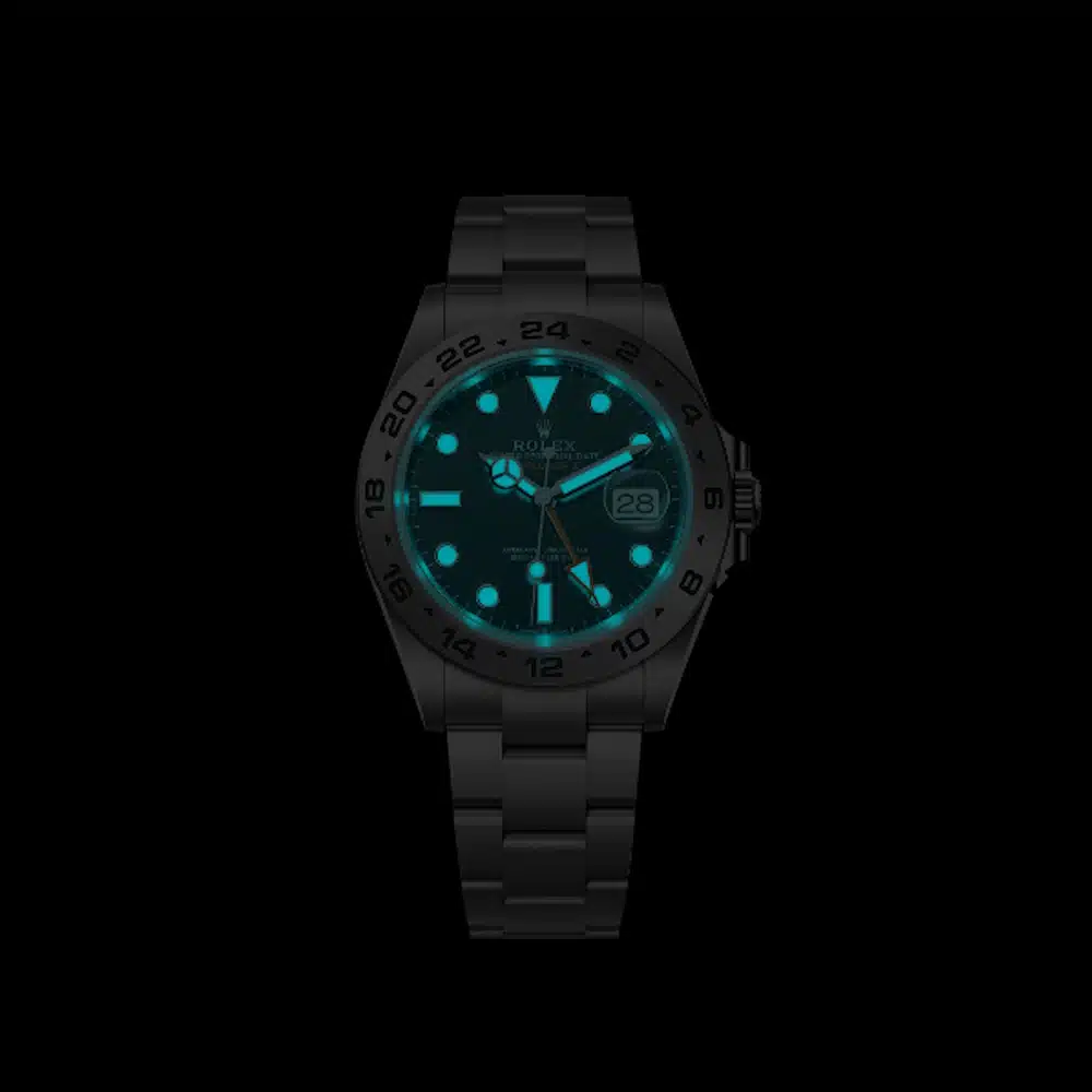One of the Rolex Explorer II’s most distinguishable features is its 24-hour bezel. It enables the wearer to differentiate daytime from nighttime while tracking a second time zone.
